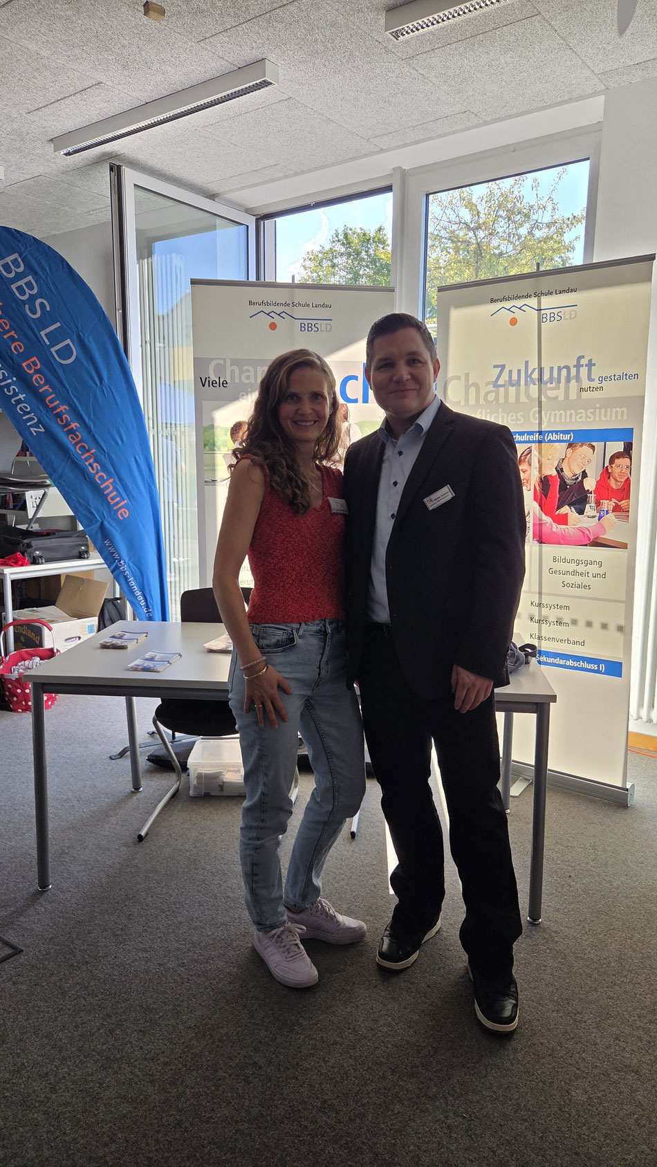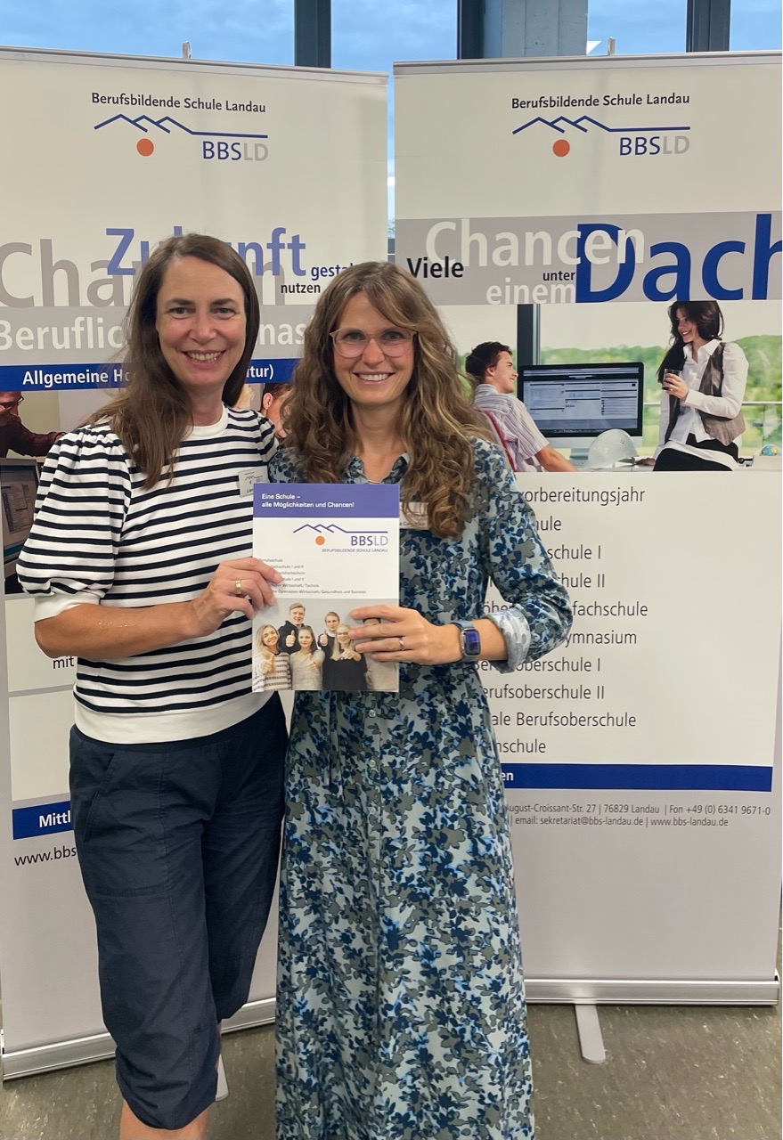 Gleich zu Beginn des neuen Schuljahres war das Messeteam der BBS auf der Berufsmesse der KARS Landau vertreten. Liane Beck und Dr. Lisa Calmbach führten viele gute Gespräche mit Schülerinnen und Schülern, die reges Interesse an unserer Berufsfachschule sowie am beruflichen Gymnasium hatten. Die Fragen der jungen Gäste waren dabei sehr konkret und zeigten, wie gut vorbereitet die Besucherinnen und Besucher der Messe waren. Viele Schülerinnen und Schüler kündigten an, sich unsere Räumlichkeiten dann am 26. September bei unserem Berufsorientierungstag (BOT) anschauen zu wollen. Wir freuen uns auf euch!