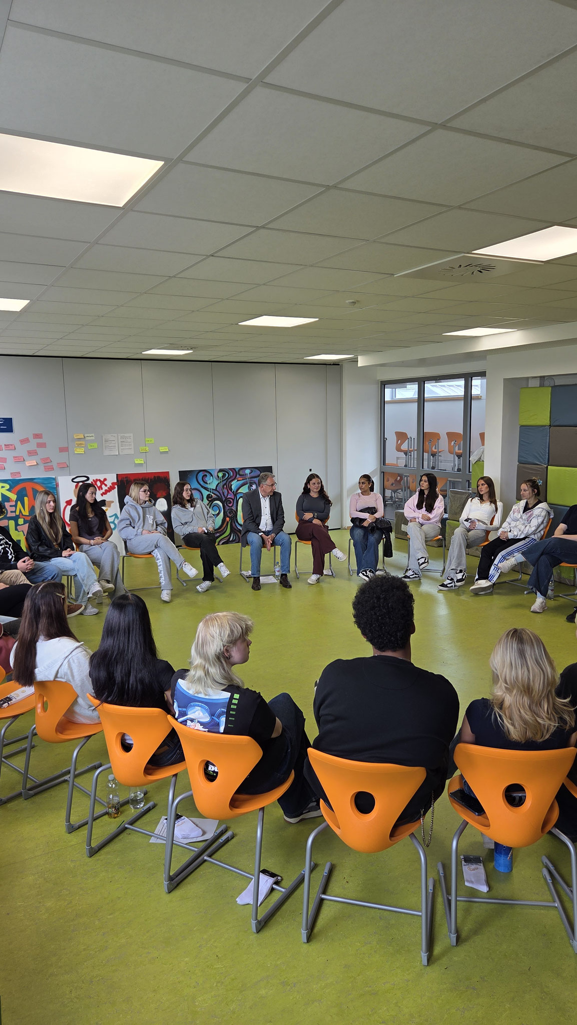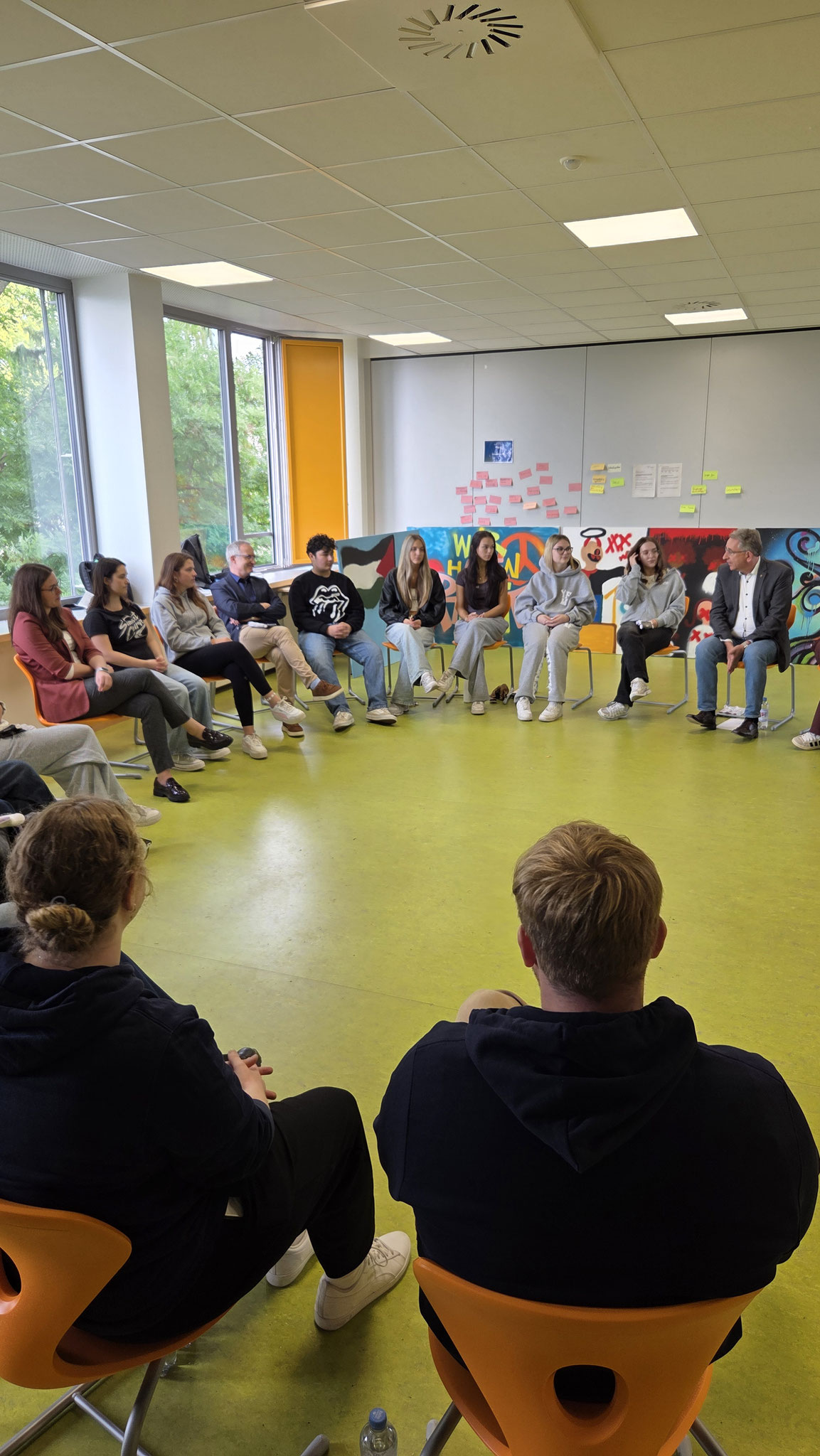 Vielen jungen Menschen fällt es immer schwerer, Politik greifbar zu erleben und das Gefühl zu haben, mit der eigenen Meinung gehört zu werden. Um genau das zu ändern, besuchte u.a. Matthias Lammert, Vizepräsident des rheinland-pfälzischen Landtags, im Rahmen der Aktion „Landtag goes Berufsschule“ die BBS Landau. In dem mehrtägigen Event wurden 36 Workshops zu verschiedenen Themen angeboten, aber auch viele Gespräche geführt. In einer Diskussionsrunde, an der auch die Stadtbeigeordnete Lena Dürphold teilnahm, konnten die Schüler:innen ihre Gedanken zu Themen wie dem Nahost-Konflikt, Frauenrechten und Rassismus teilen – und es wurde ihnen zugehört!